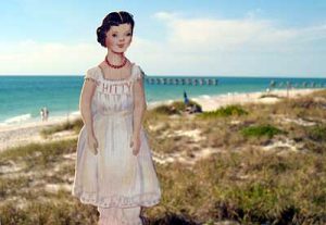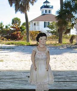 Hitty Preble and I visited the lighthouse at Boca Grande, FL. We had lunch first on the picnic tables nearby, then walked the boardwalk over the dunes to the beach on the Gulf of Mexico. There was a good view of the lighthouse. The beach was nearly deserted. Hitty wished she had a bathing suit, it would have to be an old fashioned one to cover all her underwear!